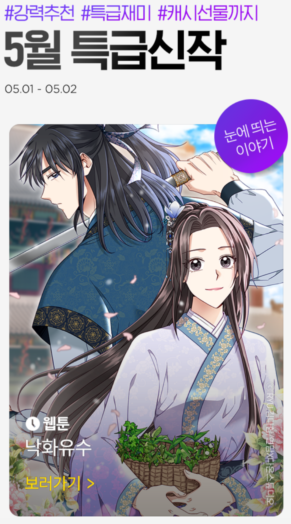 <낙화유수>의 노블코믹스 웹툰이 론칭되었습니다.